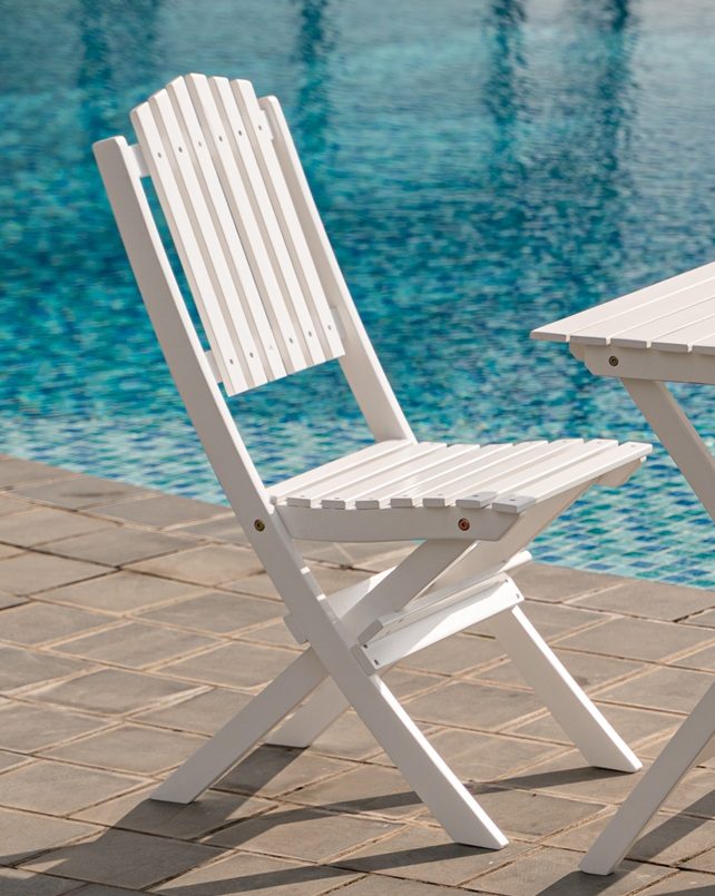 Brännö klassisk matgrupp i vit färg. Haväng matgrupp har en modern stil och passar in på de flesta uteplatser. Gruppen består av två stycken Haväng stolar tillsammans med ett Brännö bord