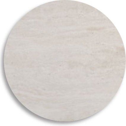 Dexter matbord med svartlackat metallunderrede och en toppskiva i äkta travertin sten.