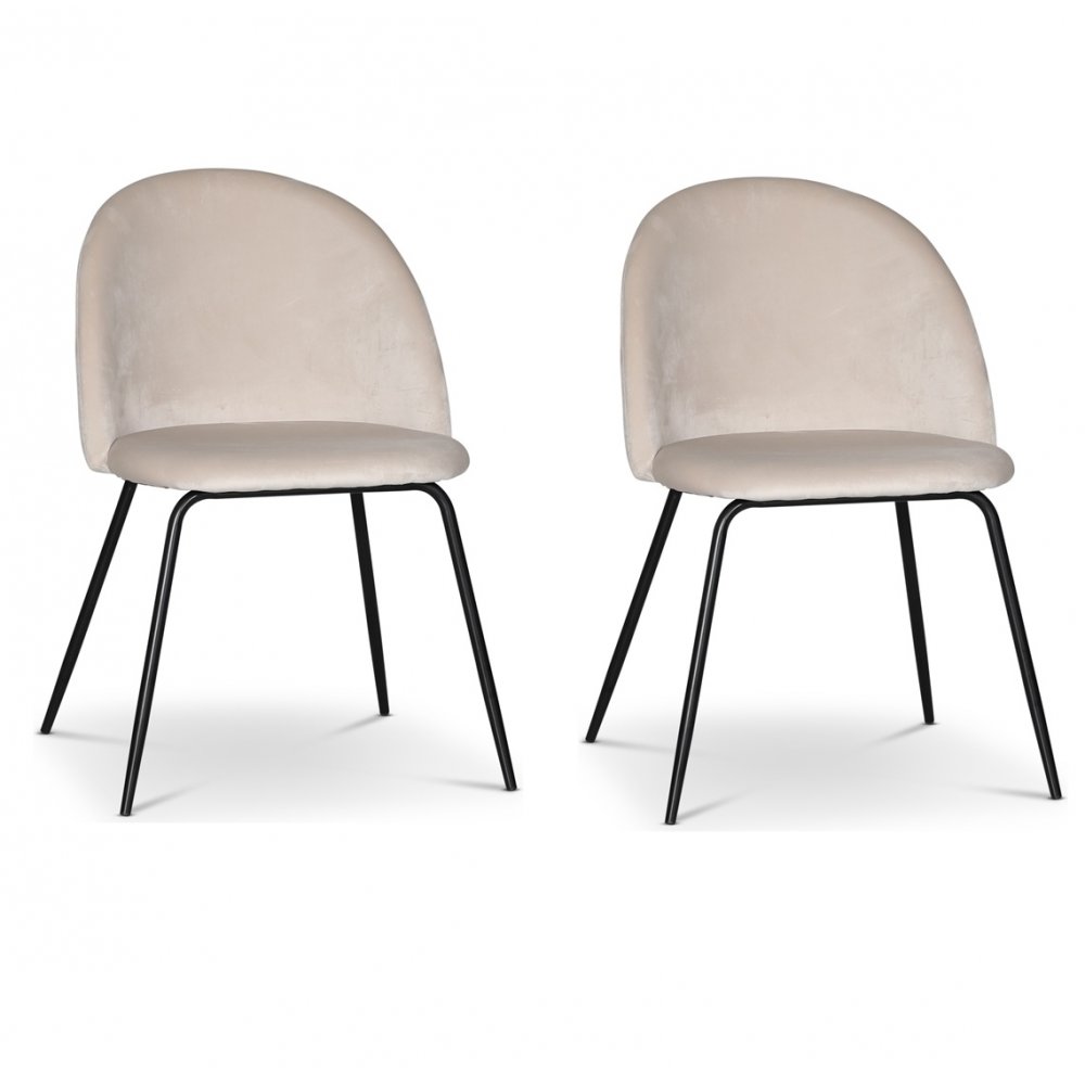 Astrid stolar i beige sammet kompletterar bordet med sin mjuka textur och moderna siluett. Den stoppade sitsen och ryggen erbjuder en bekväm sittupplevelse, och de svarta benen skapar en stilren kontrast mot det ljusa tyget. Tillsammans bildar de en komplett matgrupp som passar i både klassiska och moderna hem.