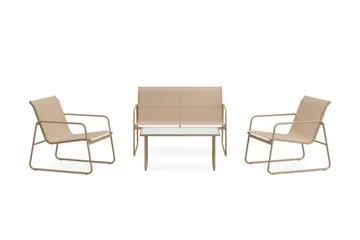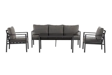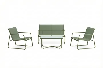 Pelanda Loungegrupp - Soffa och 2 fåtöljer i stål soffbord med frostad glasskiva, Grön