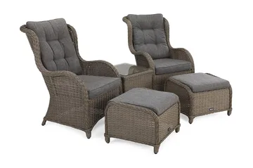 Eleganta utemöbelgrupper med bord, fåtöljer eller stolar gör att du kan skapa trivsamma platser för att umgås eller äta. En utemöbelgrupp blir en dekorativ och samlande punkt i din trädgård som du kan komplettera med en parasoll under soliga dagar. Utemöbelgrupper är också lätta att flytta till en annan plats och du kan ställa dit fler stolar om ni blir många.