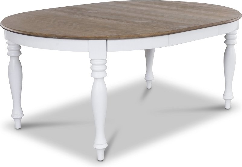 Detta runda bord har en diameter på 120 cm men kan förlängas med den medföljande iläggsskivan så att det blir 175 cm.